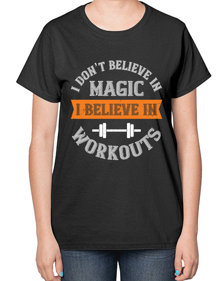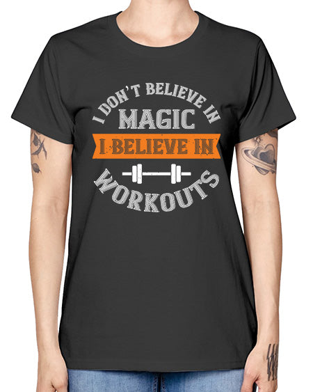 i dont belive in magic i believe in workouts 32# - gym- Ladies T-Shirt