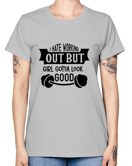 I hate working out but girl gotta look good 287# - gym- Ladies T-Shirt