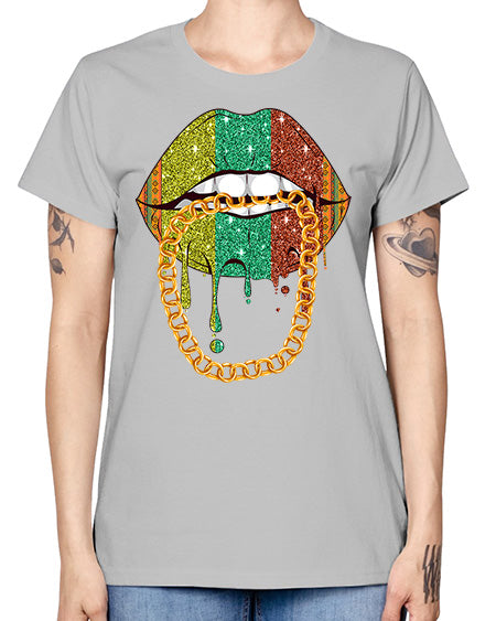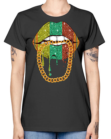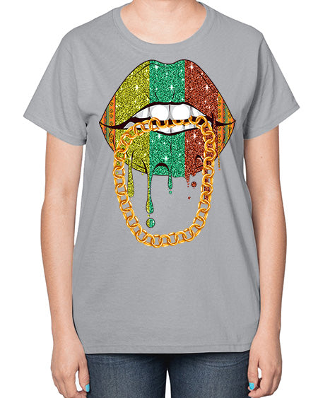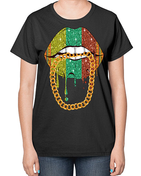 Juneteenth Women Melanin Girl Lips Png 25# - black juneteenth- Ladies T-Shirt