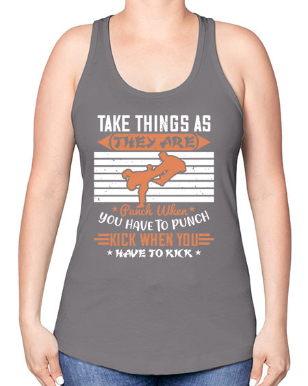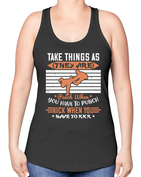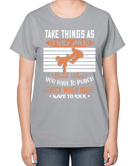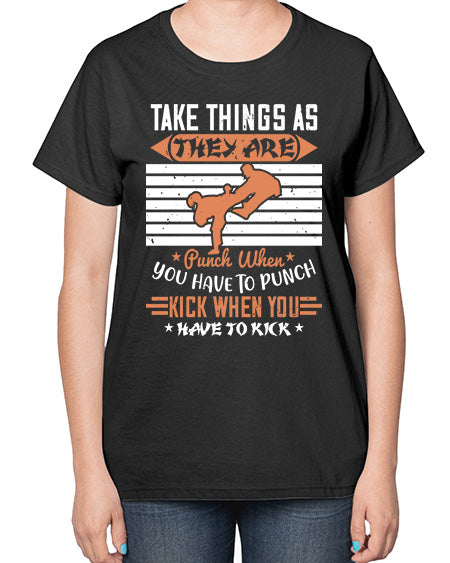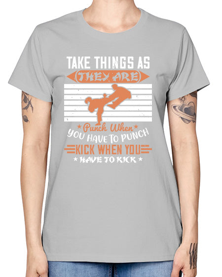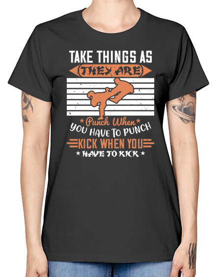 take things as they are punch when you have to punch kick when you have to kick 536# - karate MMA- Ladies T-Shirt
