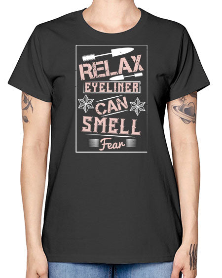Relax – eyeliner can smell fear Style 187# -makeup Ladies T-Shirt