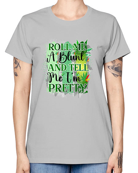 Roll Me A Blunt And Tell Me Im Pretty 1026# - marijuana- Ladies T-Shirt