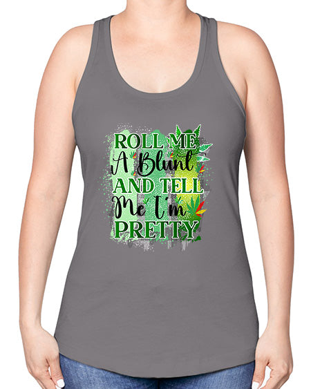 Roll Me A Blunt And Tell Me Im Pretty 1026# - marijuana -Racerback Tank