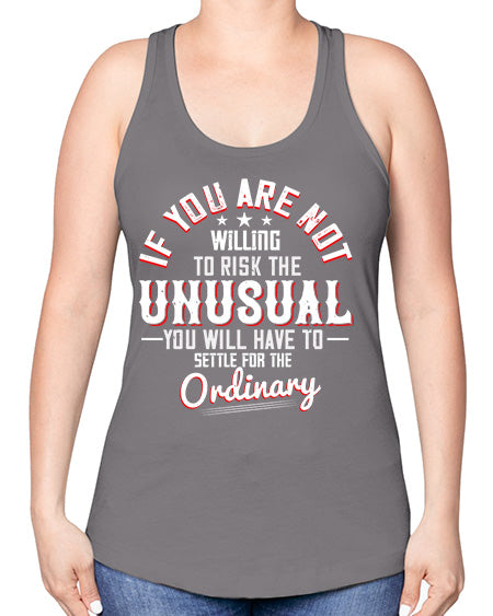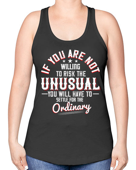If you are not willing to risk the unusual you will have to settle for the ordinary Style 37# - motivation -Racerback Tank