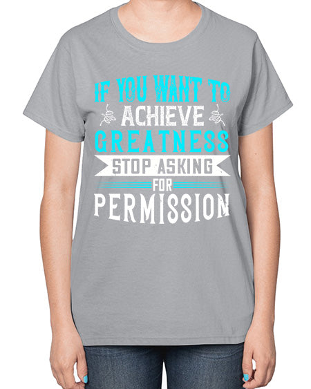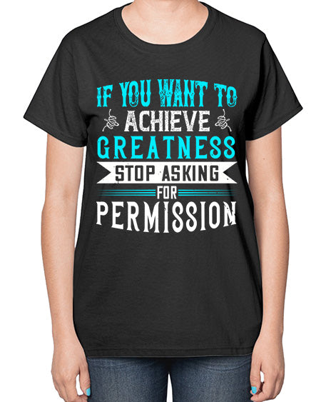 If you want to achieve greatness stop asking for permission Style 35# - motivation- Ladies T-Shirt