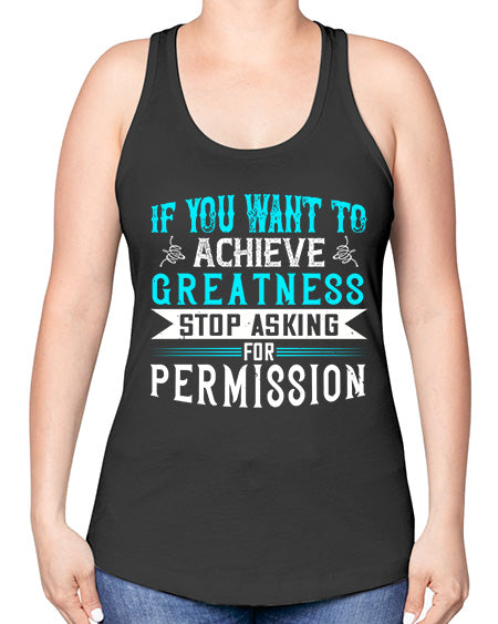 If you want to achieve greatness stop asking for permission Style 35# - motivation -Racerback Tank