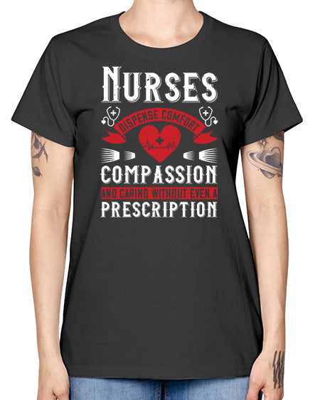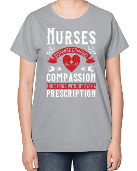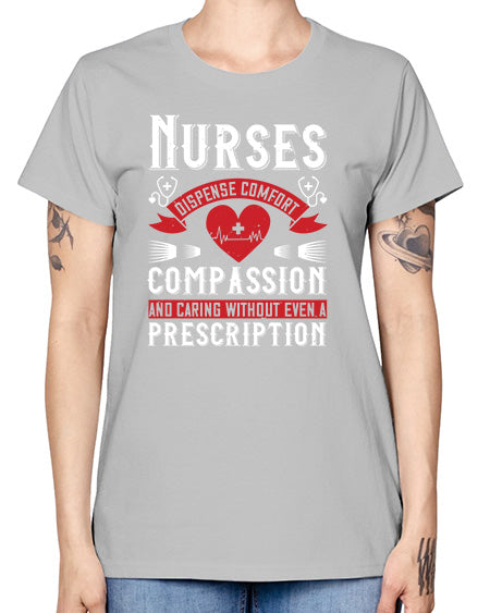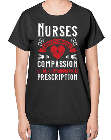 Nurses dispense comfort compassion and caring without even a prescription Style 1238# - nurse- Ladies T-Shirt