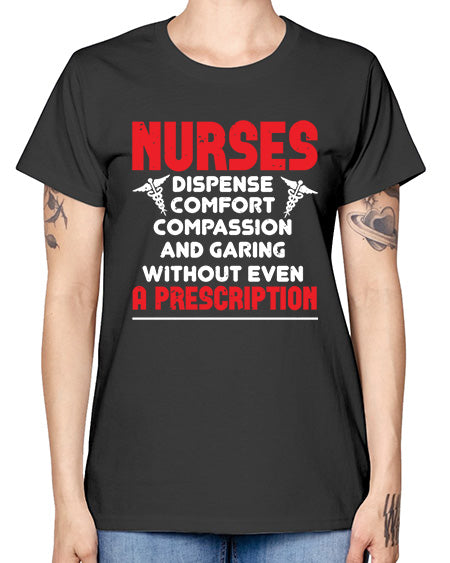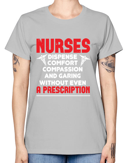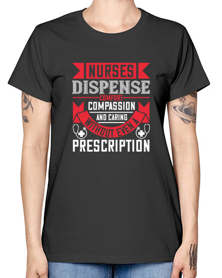 Nurses dispense comfort compassion and garing without even a prescription Style 1240# - nurse - Missy T-Shirt