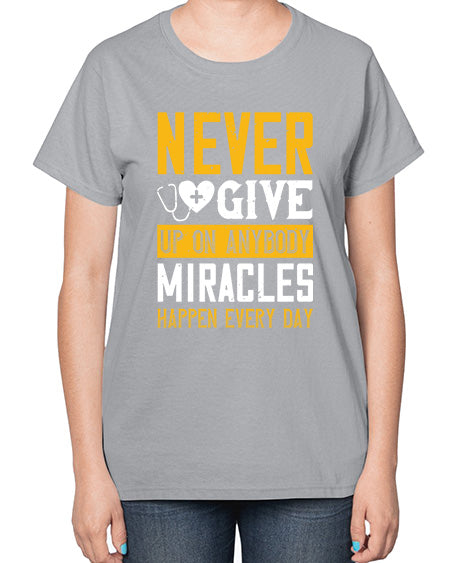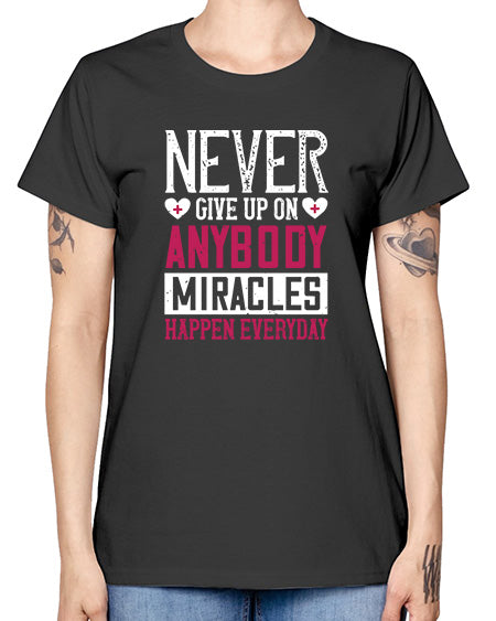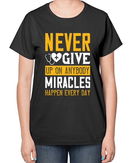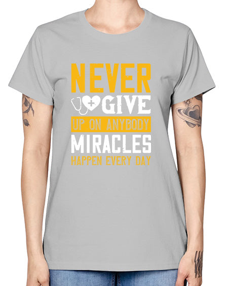 Never give up on anybody Miracles happen every day Style 309# - nurse- Ladies T-Shirt
