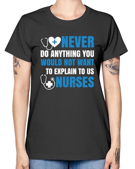Never do anything you would not want to explain to us nurses Style 307# - nurse- Ladies T-Shirt