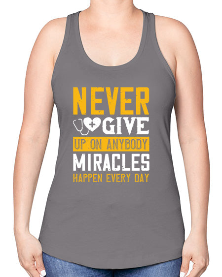 Never give up on anybody Miracles happen every day Style 309# - nurse -Racerback Tank