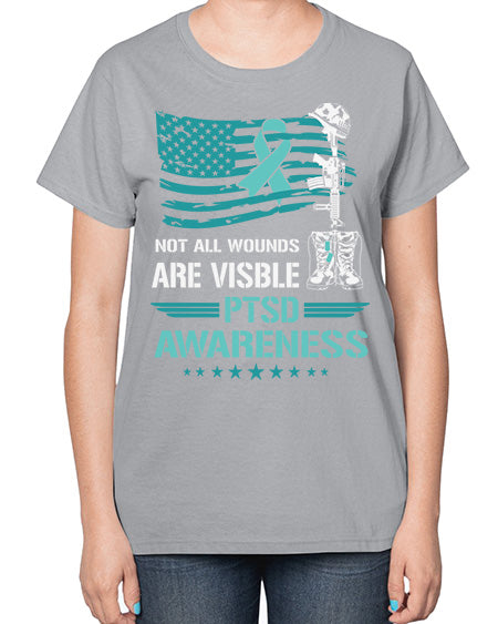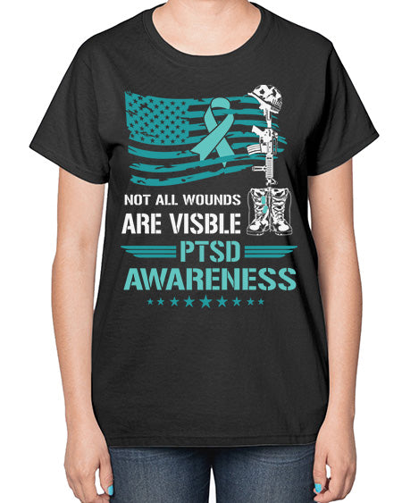 Patriotic Military PTSD Awareness 13# - PTSD- Ladies T-Shirt