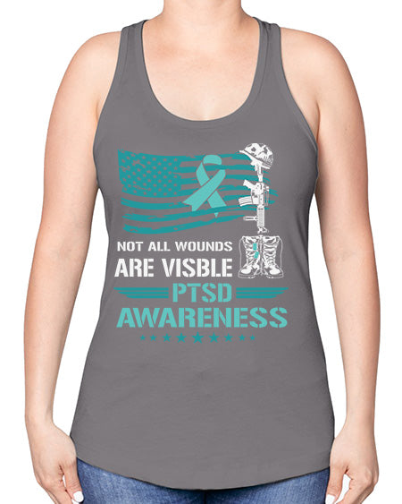 Patriotic Military PTSD Awareness 13# - PTSD -Racerback Tank