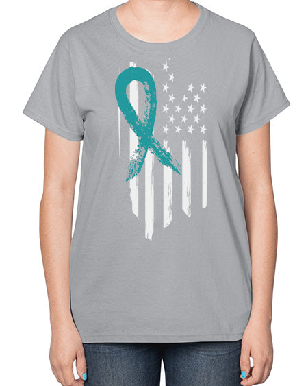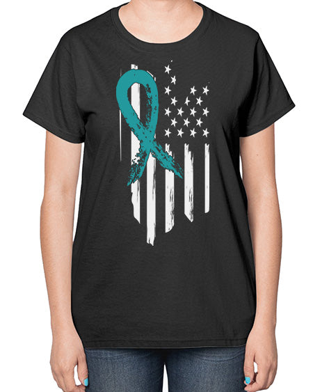 PTSD Teal Ribbon Distressed US 7# - PTSD- Ladies T-Shirt