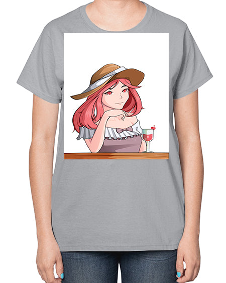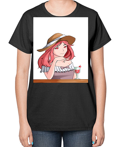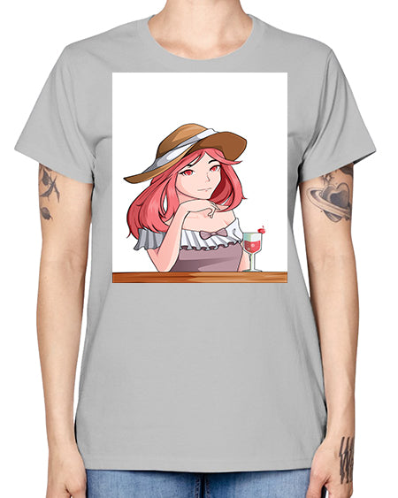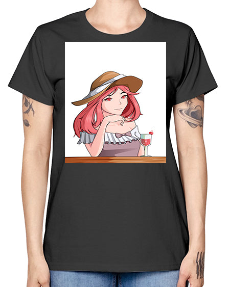 pretty woman with fresh juice in summer 37# - anime- Ladies T-Shirt