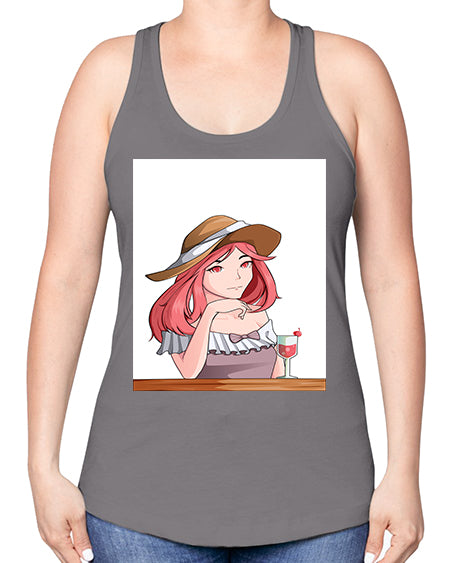 pretty woman with fresh juice in summer 37# - anime -Racerback Tank