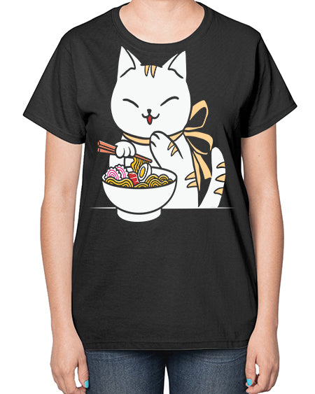 Ramen Cat Kawaii Anime Tee Japanese 280# - anime- Ladies T-Shirt