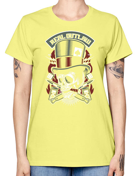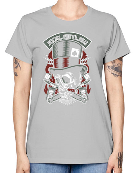 Real Outlaw Skull 1011# - skull and bones- Ladies T-Shirt