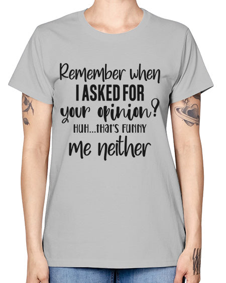 remeber when I asked for your opinion 1014# - funny- Ladies T-Shirt
