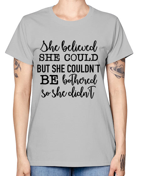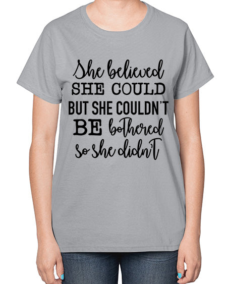 she believed she could but she couldnt be bothered so she didnt 1039# - funny- Ladies T-Shirt