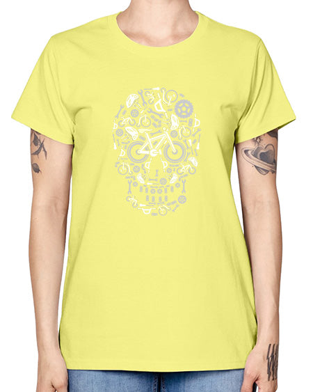 Skull Bicycle 1048# - skull and bones- Ladies T-Shirt