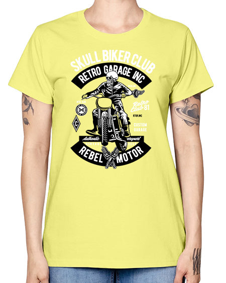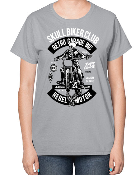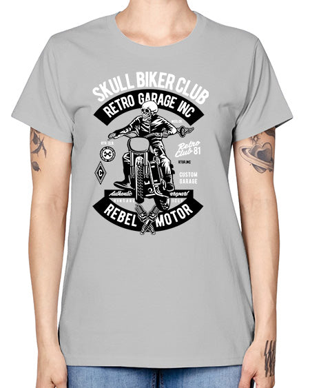 Skull Biker Club 1050# - skull and bones- Ladies T-Shirt
