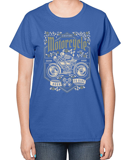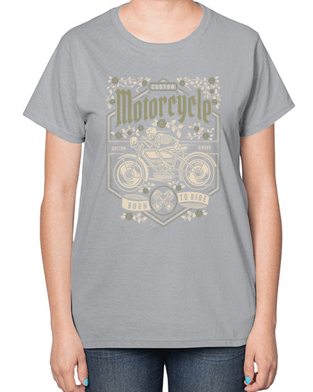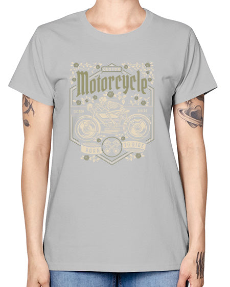 Skull Motorcycle 1060# - skull and bones- Ladies T-Shirt