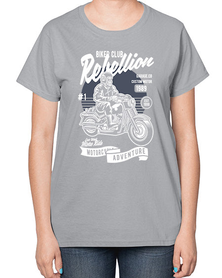 Skull Rebel Motorcycle 1062# - skull and bones- Ladies T-Shirt