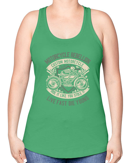 Skull Rebel Motorcycle 1062# - skull and bones -Racerback Tank