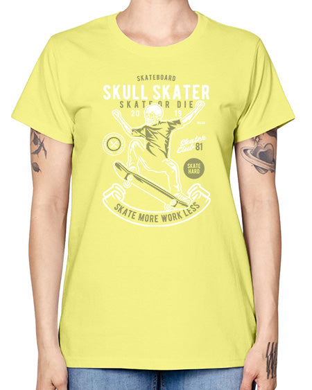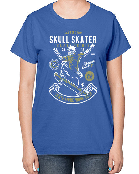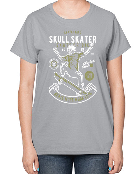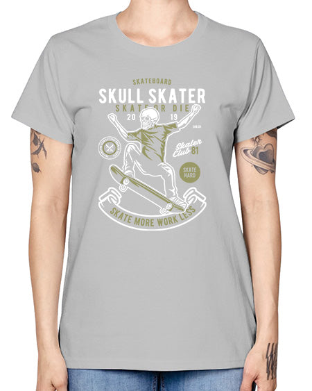 Skull Skater 1064# - skull and bones- Ladies T-Shirt