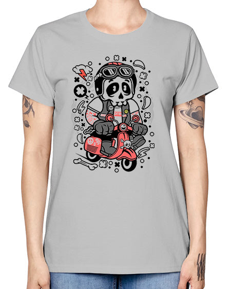 Skull Scooterist 1063# - skull and bones- Ladies T-Shirt