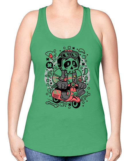Skull Scooterist 1063# - skull and bones -Racerback Tank