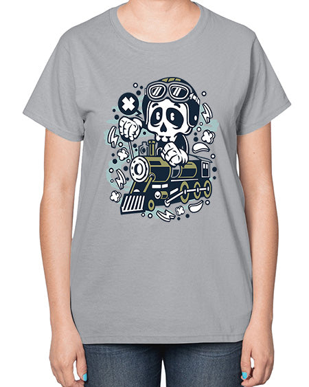 Skull Train 1067# - skull and bones- Ladies T-Shirt