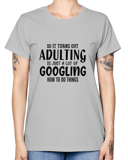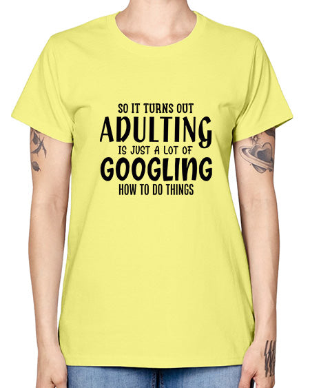 so it turns out adulting is just a lot of googling how to do things 85# - sarcastic- Ladies T-Shirt