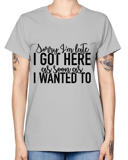 sorry im late i got here as soon as i wanted to 1100# - funny- Ladies T-Shirt