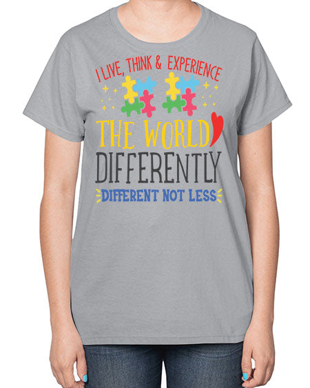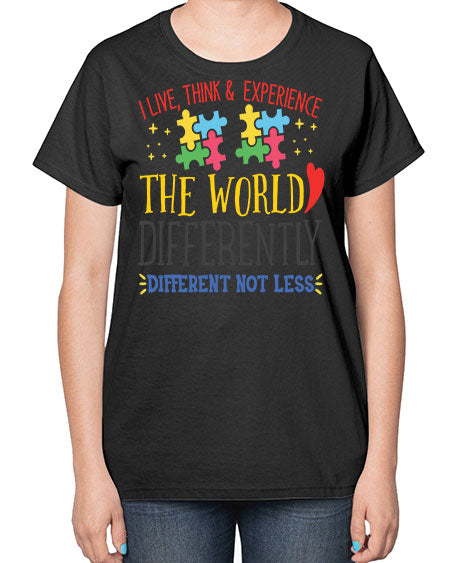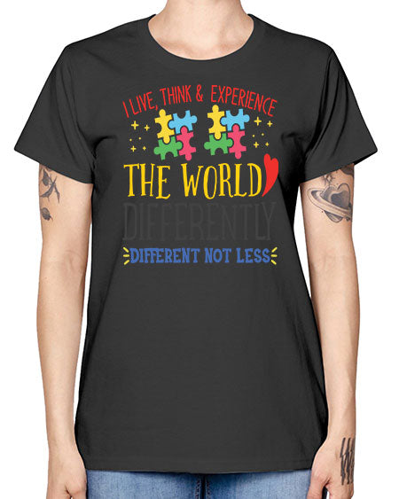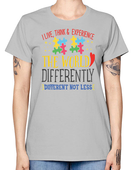 i live think experience the world differently different not less Style 20# - autism- Ladies T-Shirt