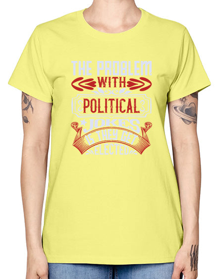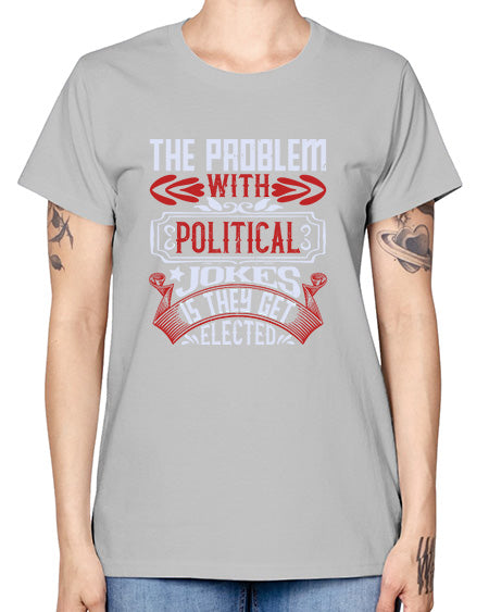 The problem with political jokes is they get elected 1154# - graphic- Ladies T-Shirt