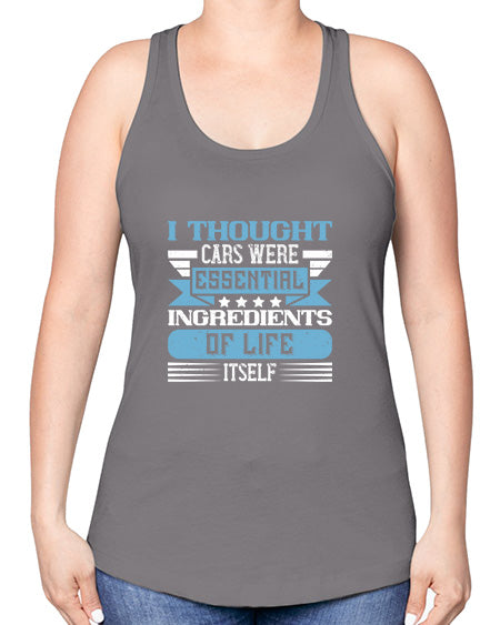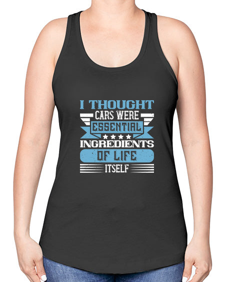 I thought cars were essential ingredients of life itself 29# - car -Racerback Tank