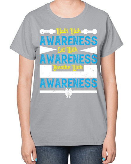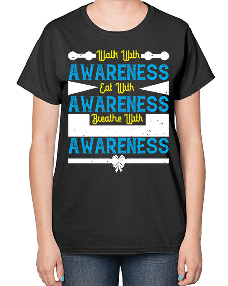 Walk with awareness Eat with awareness Breathe with awareness Style 9# - Self awareness- Ladies T-Shirt