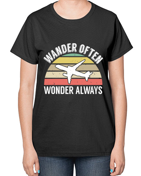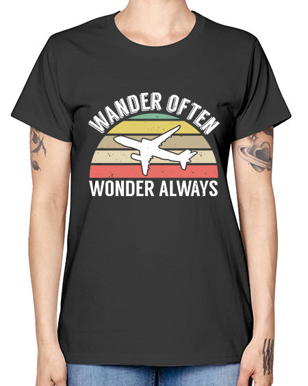 wander often wonder always 47# - airplane- Ladies T-Shirt