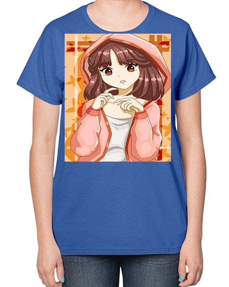 Beautiful and cute girl brown hair with jacket 81# - anime- Ladies T-Shirt