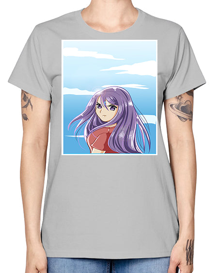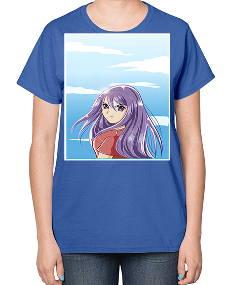 Beautiful and cute girl purple long hair in the summer with 109# - anime- Ladies T-Shirt