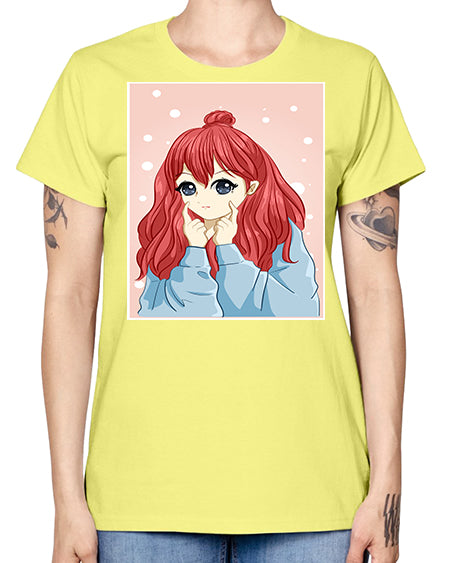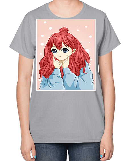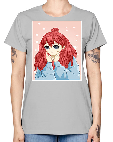 Beautiful and cute girl long red hair with jacket 150# - anime- Ladies T-Shirt