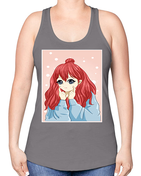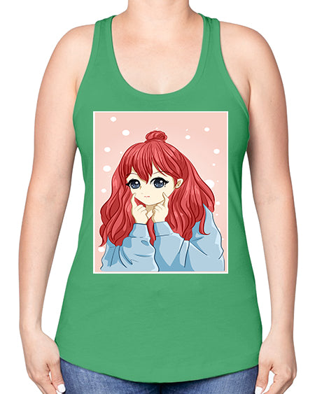 Beautiful and cute girl long red hair with jacket 150# - anime -Racerback Tank