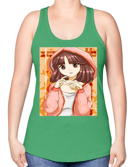 Beautiful and cute girl brown hair with jacket 81# - anime -Racerback Tank