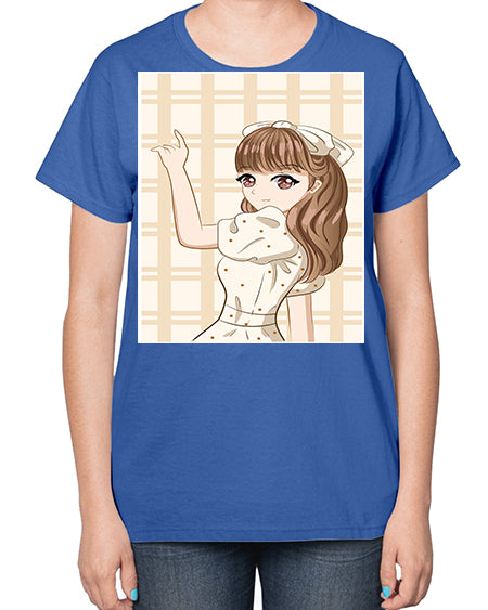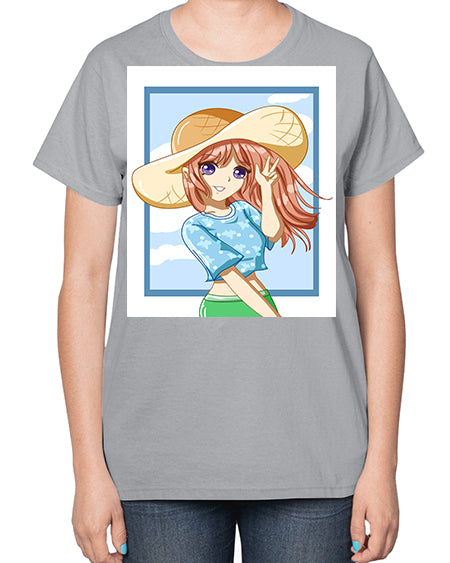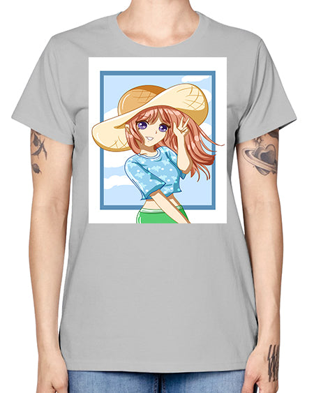 Beautiful and happy girl with blue shirt in summer 51# - anime- Ladies T-Shirt