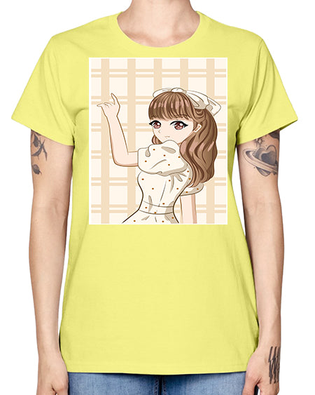 Beautiful and happy girl with hair bangs 92# - anime- Ladies T-Shirt