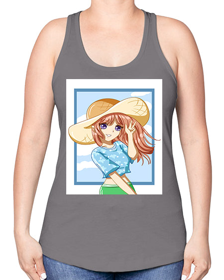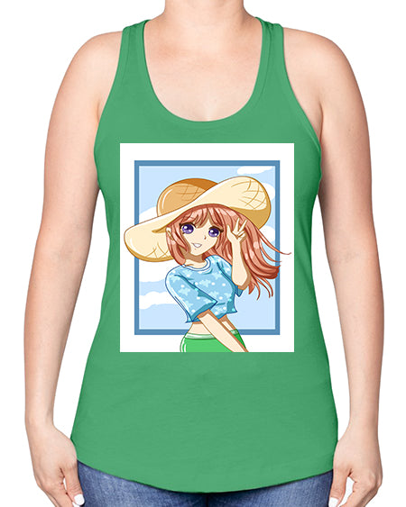 Beautiful and happy girl with blue shirt in summer 51# - anime -Racerback Tank
