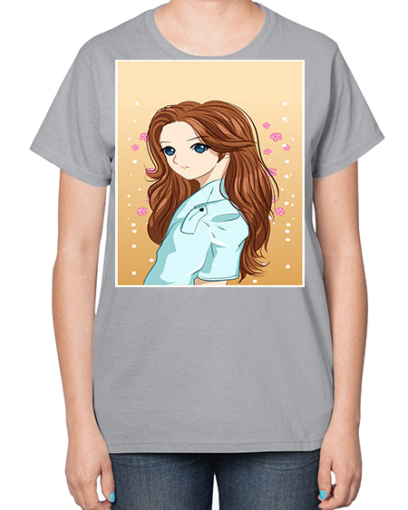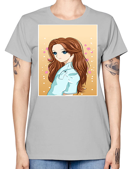 Beautiful and pretty girl brown long hair 123# - anime- Ladies T-Shirt