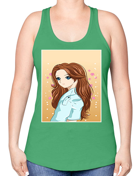 Beautiful and pretty girl brown long hair 123# - anime -Racerback Tank